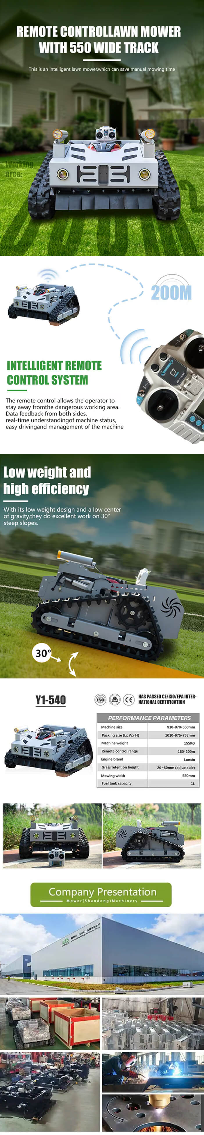 The Y2-800 is a robust, remote-controlled wheeled mower designed for efficient and safe cutting in commercial, municipal, and large-scale landscaping applications. With an 800mm (31.5-inch) cutting width and four-wheel stability, it delivers superior maneuverability and durability on uneven terrain, slopes, and dense vegetation.